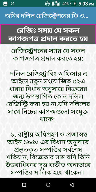 關於জমির দলিল রেজিস্ট্রেশনের ফি ও নিয়মাবলি
