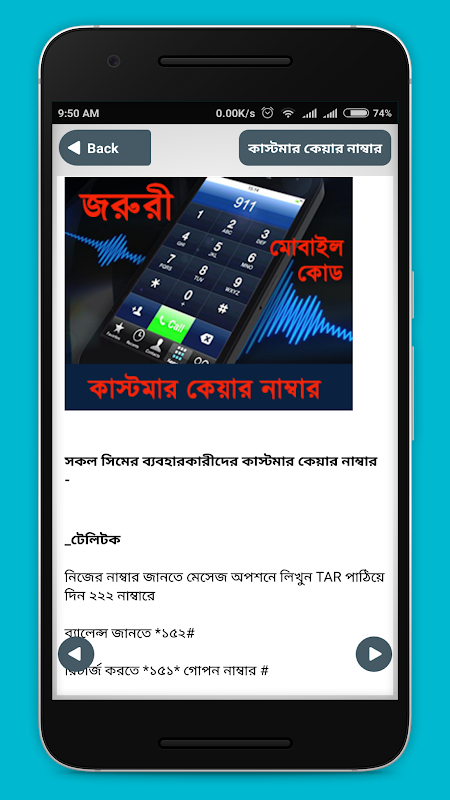 জরুরী মোবাইল কোড,সকল সিমের দরকারি কোড ও সকল সিমের সকল তথ্য সবারই জানা উচিত। মোবাইলে ব্যবহৃত সিম কোম্পানির সকল সিমের অফার, অনেক গোপনীয় জরুরী মোবাইল কোড ও বিভিন্ন সার্ভিসের শর্ট কোড সম্পর্কে জানলে সহজেই কাঙ্ক্ষিত প্যাকেজ ব্যবহার করা সম্ভব। মোবাইল ফোন ব্যবহারকারীদের জন্য মোবাইল টিপস, জরুরী মোবাইল নাম্বার, বর্তমান সময়ের সকল সিমের দরকারি কোড important code of mobile sim 2018, বিভিন্ন অপারেটরের সকল সিমের দরকারি সব তথ্য - All Sim USSD Code, কাজের সময় সকল সিমের দরকারি কোড-all sim code number-সিম কোড ও সকল সিমের দরকারি কোড ও বোনাস/ mobile offer রয়েছে যা জানা থাকা অনেক দরকারি। মোবাইল কোড সকল ফোনের অর্থাৎ মোবাইলের সব সিম ব্যবহারকারীদের জন্য সকল সিমের অফার ২০১৮/sim offer 2018 ও জরুরী মোবাইল কোড/সকল সিমের দরকারি কোড important code of mobile sim 2018 এবং কিছু মোবাইল টিপস Mobile tips Bangla নিয়েই আমাদের এই ফ্রি বাংলা এপস যা আশা করি আপনাদের ভাল লাগবে ও কাজে আসবে।