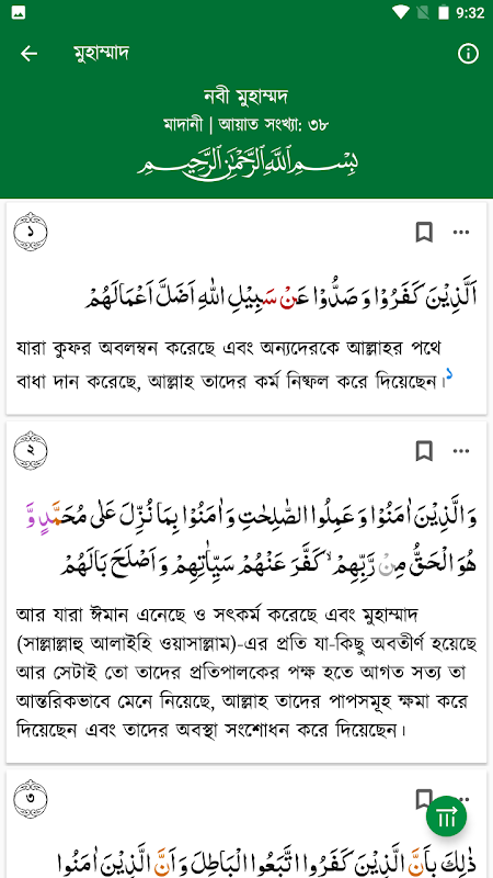 .根據您的選擇為阿拉伯語經文、孟加拉語翻譯和 Tafsir 字體