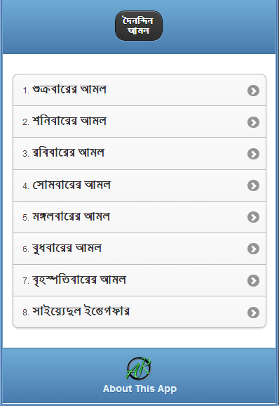 প্রতিদিন কোন আমল গুলো করলে উপযুক্ত যাযাহ পাওয়া যাবে সেগুলো এই অ্যাপে সুন্দরভাবে লিপিবদ্ধ করা হয়েছে। এখানে সপ্তাহের কোন দিন আল্লাহ্র প্রিয় বান্দা/বান্দিরা কোন নামাযে কোন কোন তসবীহ্ পাঠ করিবে তা দিন অনুসারে উল্লেখ করা হয়েছে। বাংলা ভাষার সাথে সাথে আরবি ভাষায়ও বিশুদ্ধ ও নির্ভুলভাবে লিপিবদ্ধ। এই অ্যাপটা পড়ে আল্লাহ্র কোন একজন বান্দাও যদি আল্লাহ্র রহমত লাভ করতে পারে সেটাই এই অ্যাপ তৈরির সফলতা বলে দরে নেওয়া হবে।