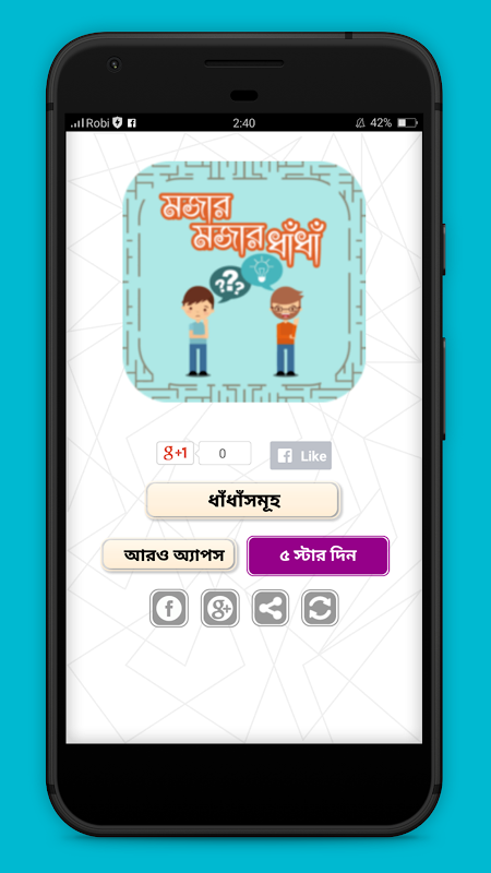 In this app we have tried to explore the world of Riddles or Dhadha in bangla with all latest collection.Hope everyone will love to enjoy this app. Thanks to all in advance.