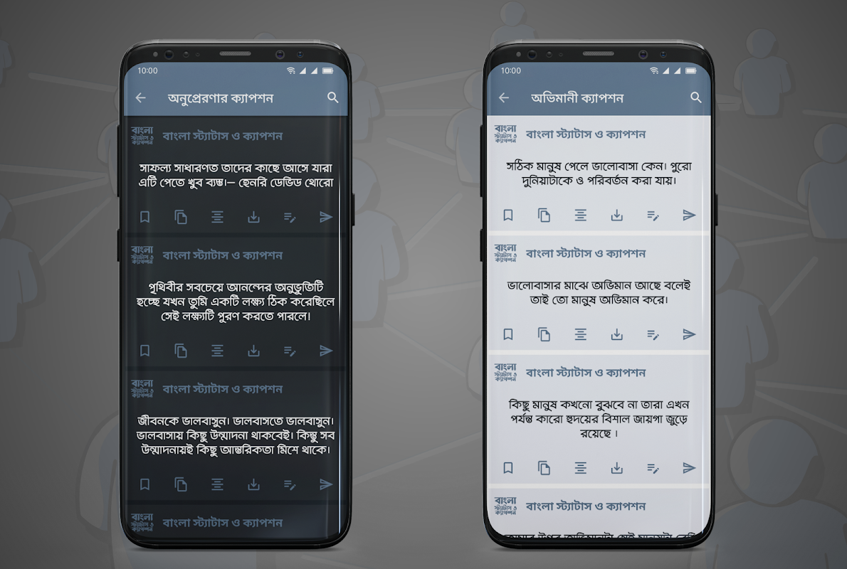 বাংলা স্ট্যাটাস ও ক্যাপশন অ্যাদদ অগণিতবাংলাস্ট্যাটাসএবংক্যাপদ আপনি অফলাইনে ব্যবহার করতেপারবেরতেপারবেদ অ্যাপটি বিভিন্ন ক্যাটাগরির বাংাগলির বাংাগদ ক্যাপশনসরবরাহকরে,যেমনভালোবাদা,মদ মজার, এটিটিউড、মোটিভেশনাল、রোমান্টিক、বধ、ব ইসলামিক、জন্মদিন、এবং আরও অনেিকিিি