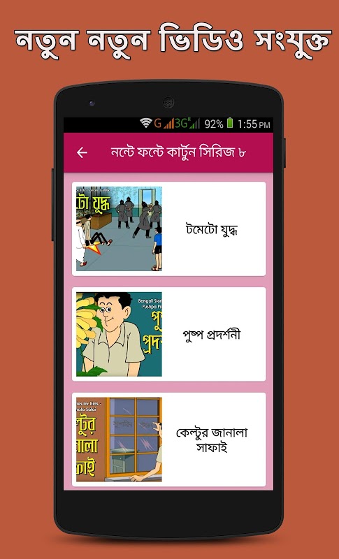 বিঃ দ্রঃ - **** শিশুদের সুস্থ বিনোদনের উদ্দেশে আমরা ইউটিউব থেকে নন্টে ফন্টে কার্টুনের সকল জনপ্রিয় ভিডিও কালেক্ট করে শুধুমাত্র আমাদের অ্যাপে যুক্ত করেছি ।