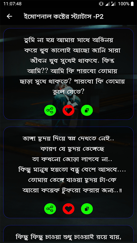 আমাদের এই App-টি আশাকরি আপনাদের খুব ভালো লাগবে অ্যাপসটি। আর এই স্ট্যাটাস গুলো খুব সহজেই শেয়ার করতে পারবেন।