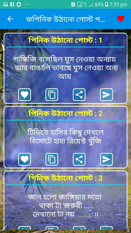 আপনে খুব সহজেই Apps টির এসএমএস ও স্ট্যাটাস এক Click এই কপি,শেয়ার, সেন্ট করতে পারবেন।