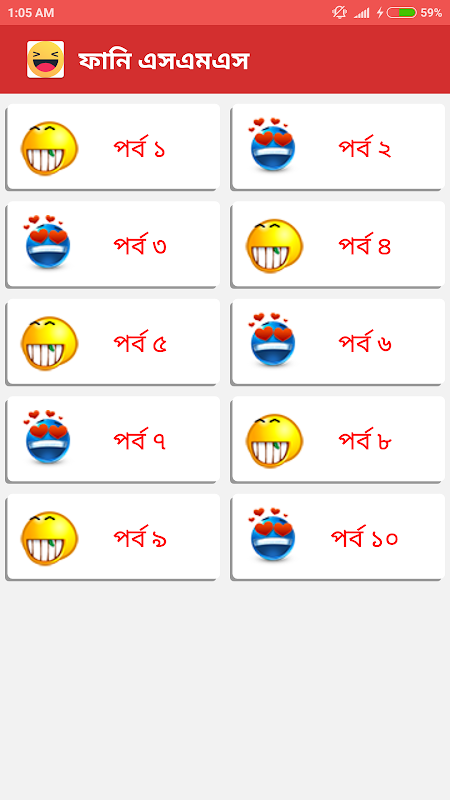 ১০ টি ক্যাটেগরিতে বাংলা ফানি এর এসএমএস ( Bangla Funny SMS ) নিয়ে এই অ্যাপ।