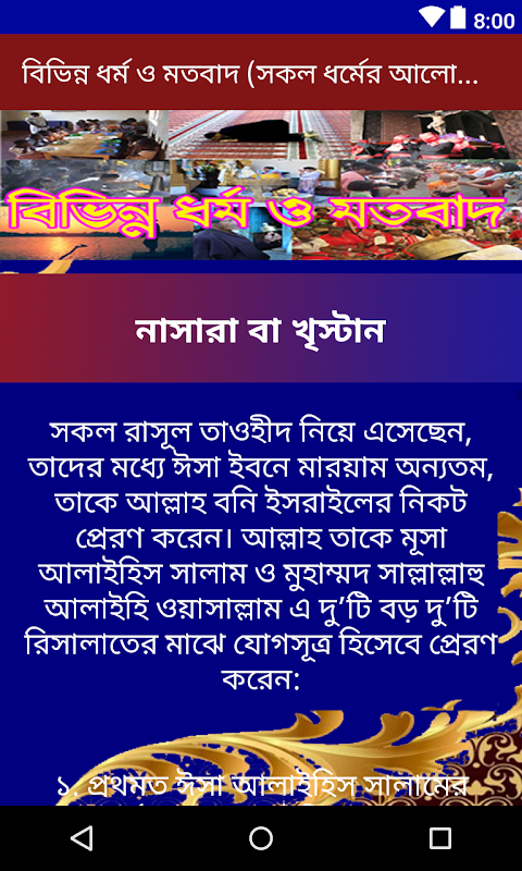 বিভিন্ন ধর্ম সম্পর্কে বিস্তারিত আলোচনা করা হয়েছে আমাদের এই অ্যাপ এ, যেখান থেকে আপনি অনেক জ্ঞান অর্জন করতে পারবেন ।