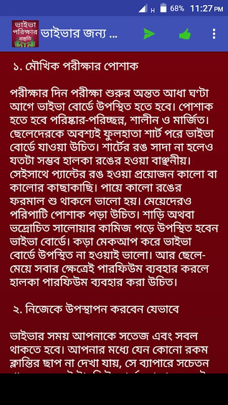 একটিসফলইন্টারভিউহলোএকজনচাকরিপ্রার্থীরজীবনেরসফলতারজন্যঅপরিহার্যএকটিঅধ্যায়。 তাইভাইভাচলাকালীনসময়প্রার্থীকেঅবশ্যইকিছুবিষয়েসতর্কতাঅবলম্বনকরতেহয়,যাতেভাইভাটাসবদিকথেকেসাফল্যমন্ডিতহয়.ভাইভাবোর্ডেপ্রবেশ,বসা,বেরোনোওউত্তরদেয়ারসময়প্রার্থীরআচরনওকথোপকথনদ্বারানির্ধারিতহয়প্রার্থীরসফলতাবাব্যর্থতা.এছাড়াআমাদেরসবারক্যারিয়ারপ্রসঙ্গেঅনেকেরই স্বপ্নবিসিএসক্যাডারহওয়া。 তবেবিসিএসক্যাডারহতেচাইলেঝক্কিকমনয়。 প্রথমেপ্রিলিমিনারিপরীক্ষা,তারপরলিখিতপরীক্ষাএবংসবশেষেমৌখিকপরীক্ষায়উত্তীর্ণহলেইশেষপর্যন্তমিলবেবিসিএসক্যাডারহওয়ারসৌভাগ্য.আরএস্বপ্নমুহূর্তেশেষহয়েযায়শুধুমাত্রভাইভাপরিক্ষাসফলনাহওয়ারকারণে.ভাইভাবোর্ডেনিজেকেউপস্থাপনকরতেনাপারারকারণে.ভাইভাবোর্ডেকিভাবেসফল হবেনকিকরতেহবেএসম্পর্কেসহজকিছুটিপসনিয়েআমাদেরএঅ্যাপ。