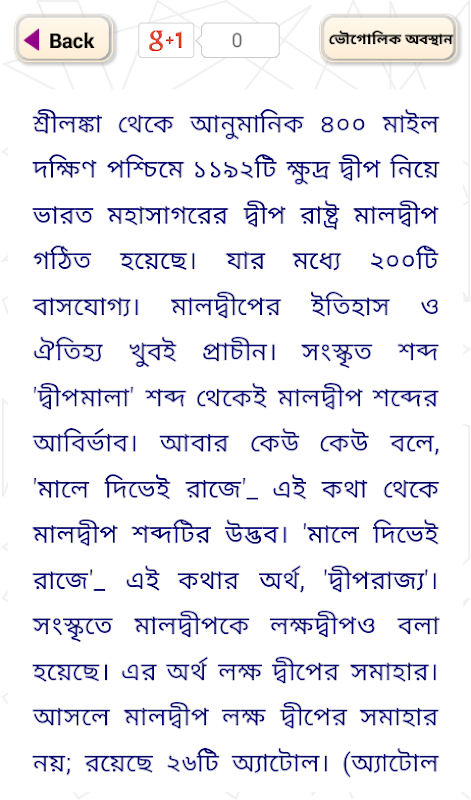 এই অ্যাপটি-তে মালদ্বীপ এর ভৌগলিক অবস্থান থেকে শুরু করে কিভাবে যাবেন ও কোথায় কোথায় ঘুরতে যাবেন তার কিছু বর্ণনা দেয়া হয়েছে। সাথে ২ টি ভ্রমন কাহিনি ও রয়েছে যা অবশ্যই আপনাকে আগ্রহী করে তুলবে মালদ্বীপ ট্যুর এর ব্যাপারে।