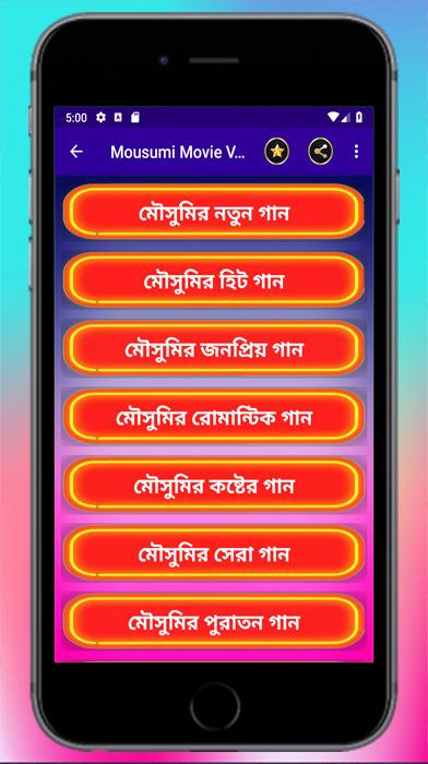 মৌসুমির সিনেমার গান মোটামুটি সকল গানের কালেকশন নিয়ে অ্যাপটি তৈরি করা হয়েছে। আপনারা খুব সহজেই এই অ্যাপে একসাথে সকল ভিডিও গান পেয়ে যাবেন। নতুন কোন গান আসার সাথে সাথে আমরা গানটি এপ্লিকেশনটিতে যুক্ত করব।