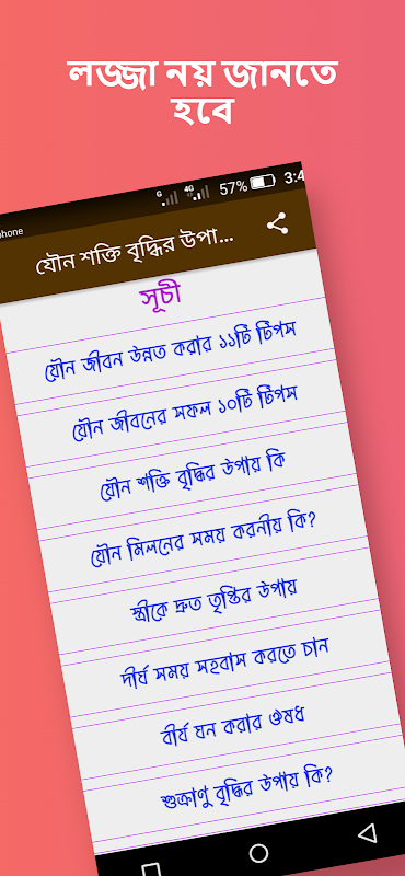 তাই এমন একটা গুরুত্বপূর্ণ সমস্যার সমাধানের জ ন্য আমরা নিয়ে এলাম যৌন শক্তি বৃদ্ধির উপায় ও ট িপসনামকঅ্যাপ। যার মধ্যে ছেলেদের গোপন সমস্যা সম্পর্কে বিস্ত রআলোচনাকরাহয়েছে। আশা করি যৌন শক্তি বৃদ্ধির উপায় নামক অ্যাপের মাধ্যমে অনেক কিছু জানতে বা শিখতে পারবেন।