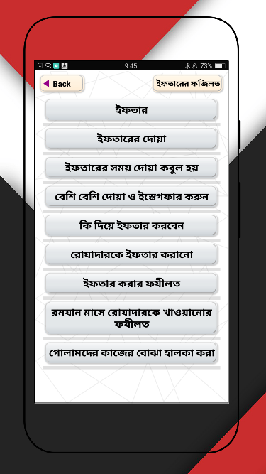 ইফতারের নিয়মকানুন এবং ফজিলত সম্পর্কে অ্যাপটি সাজানো হয়েছে।
