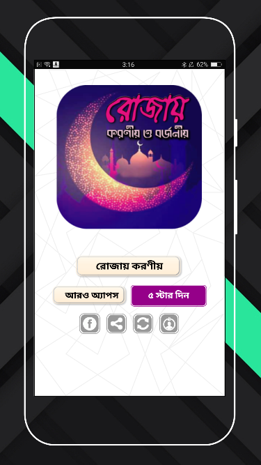 রোজায় করণীয় ও বর্জনীয় সম্পর্কে তথ্য দ্বারা অ্যাপটি সাজানো হয়েছে।
