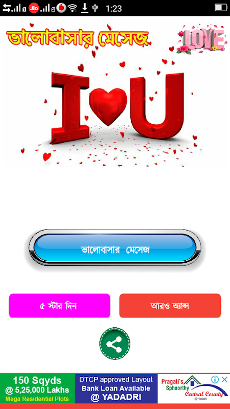 য়েদের মন জয় করতে আমাদের বিশেষ আকর্ষন মেয়ে পটানো মেসেজ।প্রেমকে জমিয়ে তুলতে ভালোবাসার মেসেজ বা প্রেমের এসএমএস।। মিষ্টি প্রেমের রোমান্টিক দিনগুলোতে প্রেমের মেসেজ,,, ভালোবাসার sms।। আপনার ভালোবাসার মানুষটিকে সব সময় কাছে পেছে বাংলা এসএমএস,,love sms প্রেম ভালোবাসায় এই এসএমএস কালেকশন মনের মানুষটিকে কাছে টেনে আনবে।। ভালোবাসার শুরু হয় ফেসবুক স্ট্যাটাস থেকে কিংবা প্রেমের কবিতার মত নিজেকে ভালোবাসার উক্তি দিয়ে সাজিয়ে প্রেমের ছন্দের মত নিজেকে রোমান্টিক করতে পারলেই ভালোবাসার জন্ম সেখান থেকেই শুরু হয়।আমাদের এই অ্যাপটিতে পাবেন মনের মানুষকে কাছে পেতে ও তাকে পটাতে মেয়ে পটানো কিছু এসএমএস।।এছাড়াও রয়েছে ভালোবাসায় বিরহ আসলে মনকে হালকা করতে কষ্টের এসএমএস বা কষ্টের স্ট্যাটাস।।