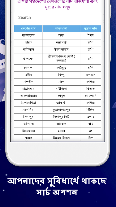 রাজধানী মুদ্রার নাম country capitals and currency অ্যাপটি অফলাইনেও ব্যবহার করতে পারবেন।