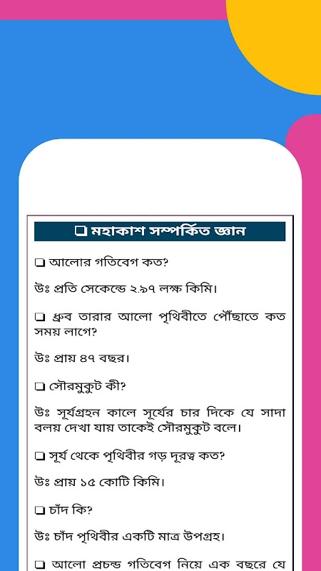 অনেকেই মহাবিশ্ব সম্পর্কে জানতে ইচ্ছুক তাদের জন্য আমাদের এ্যাপটি বেশ উপকারে আসবে। কারন সাধারণ জ্ঞান এ্যাপটির ভিতের মহাবিশ্ব সম্পর্কে বিস্তারিত আলোচনা করা হয়েছে।