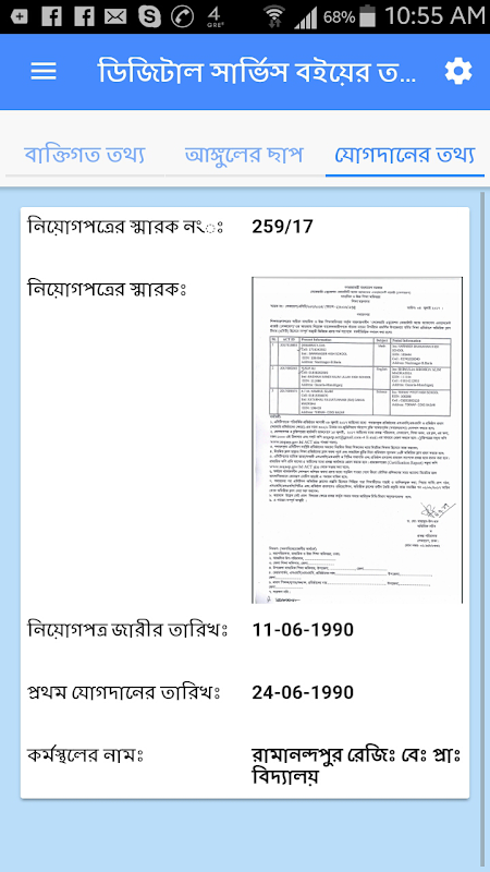 <>সার্ভিসবইখোলারশুরুথেকেবর্তমানসময়পর্যন্তসকলতথ্যদেখাযাবে。