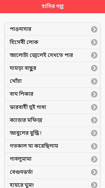 যারা হাসতে ভালোবাসেন, যারা কৌতুক কিংবা হাসির গল্প পড়তে পছন্দ করেন তাদের জন্য এই হাসির গল্প এপ। হাসির গল্প এপটিতে রয়েছে বাছাইকৃত কিছু মজার গল্প। ছোট ও বড় মিলে মোট প্রায় ৩০ টি মজার গল্প রয়েছে এই হাসির গল্প এপটিতে।
