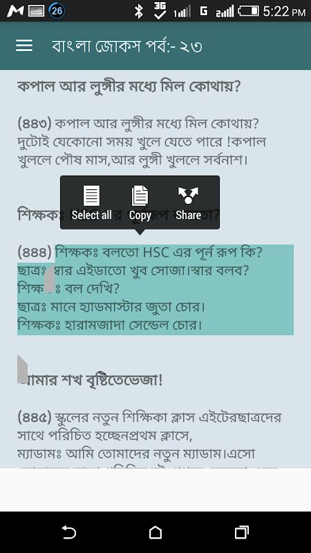 প্রতিটি জোকস প্রেস করে ধরে কপি করে যে কোন জায়গায় পেস্ট করতে পারবেন কোন রকম ঝামেলা ছাড়া।