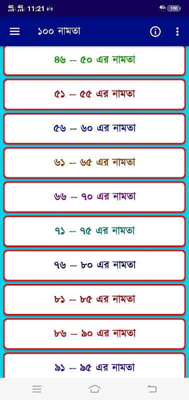 আমাদের ছোট এই অ্যাপসটিতে ১ থেকে ১০০ এর নামতা খুব সুন্দরভাবে দেওয়া আছে।
