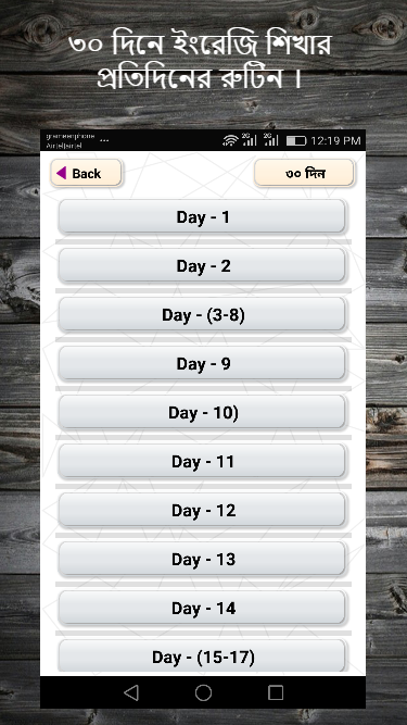 এই অ্যাপটি আমরা এমন ভাবে সাজিয়েছি যাতে আপনি ৩০ দিনে ইংরেজী ভাষা ভাল ভাবে শেখা যায়। তবে প্রতিদিন অনুশীলনের বিকল্প নাই।