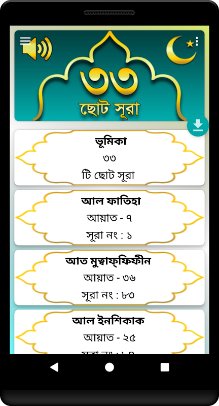 HD Quality Audio MP3 সহ আরও যা যা থাকছে এই অ্যাপ টিতে, ৩৩ টি ছোট সুরা আরবী, বাংলা উচ্চারণ, বাংলা আর্থ, যাতে খুব সহজেই সূরাগুলি শুনতে, পড়তে ও বুঝতে পারাযায়, যারা এখনো নামাজ পড়ার জন্য সূরা শিখেননি, এই App থেকে খুবসহজেই শিখতে পারেন অথবা আপনার ঘরে যদি কোন ছোট বাচ্চা থাকে তাদেরকেও শিখাতেপারেন। In this App most useful and easy 33 small surah with benglai pronunciation, meaning and audio MP3 file for listen all surah clearly. This app for memorize all small surah easily. এই অ্যাপ টিতে আরও থাকছে, সূরা আল ফাতিহা, সূরা ফীল, সূরা কোরাইশ, সূরা মাউন, সূরা কাওসার, সূরা কাফিরুন, সূরা নছর, সূরা লাহাব, সূরা এখলাছ, সূরা ফালাক,সূরা নাস, ছোট সূরা বাংলা, Surah Al-Fatihah, Surah Al-Tatfif, Surah Al-Insyiqaq, Surah Al-Buruj, Surah At-Tariq, Surah Al-A'la, Surah Al-Gasyiyah, Surah Al-Fajr, Surah Al-Balad, Surah Asy-Syamsa, Surah Al-Lail, Surah Ad-Duha, Surah Al-Insyirah, Surah At-Tin, Surah Al-'Alaq, Surah Al-Qadr, Surah Al-Bayyinah, Surah Az-Zalzalah, Surah Al-'Adiyat, Surah Al-Qari'ah, Surah At-Takasur, Surah Al-'Asr, Surah Al-Humazah, Surah Al-Fil, Surah Quraisy, Surah Al-Ma'un, Surah Al-Kausar, Surah Al-Kafirun, Surah An-Nasr, Surah Al-Lahab, Surah Al-Ikhlas, Surah Al-Falaq, Surah An-Nas, 33 small surah from Al Quran, Islamic app, namaz shikkha, ধন্যবাদ, Thanks.