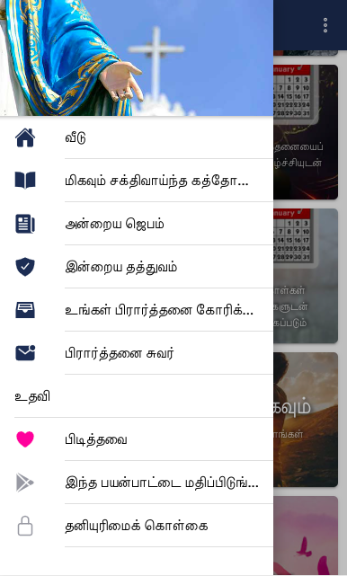 此應用程序包括泰米爾語中所有用於朝拜的強大天主教徒祈禱。