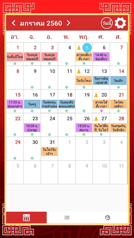 - 多種方式檢視日曆-節日日曆、泰國重要日子日曆、中國重要日子日曆、吉祥日曆