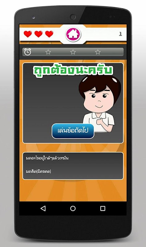 遊戲是一種測驗類型,在1套遊戲中,有60個問題,有4個選項可供選擇,每個問題有10秒的時間回答問題,如果回答不正確3次,您最多可以回答3次。立即結束但是不用擔心,我們不是故意的我們有幫助回答問題的幫助,例如消除錯誤答案,更改問題和增加響應時間。