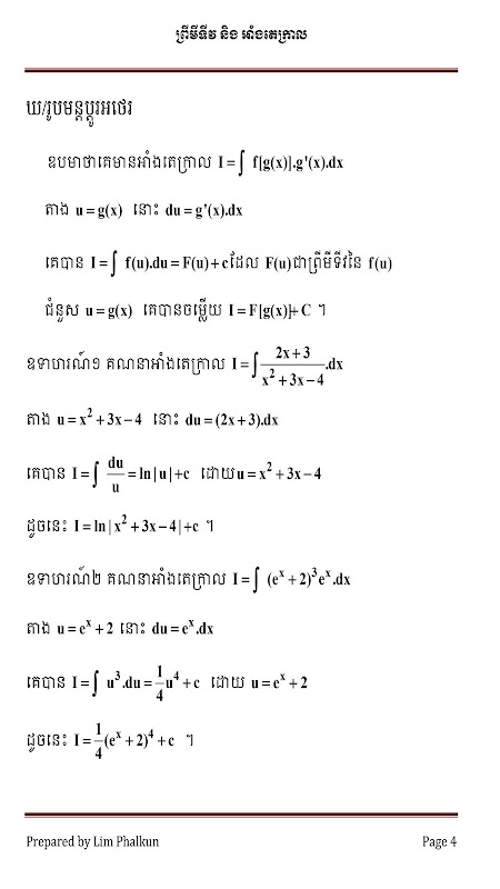 នេះគឺជាកម្មវិធីទាក់ទងនិងគណិតវិទ្យា ជាសៀវភៅព្រីមីទីវ និង អាំងតេក្រាល ថ្នាក់ទី១២ ដែលបានរៀបចំឡើងជាមួយទូរស័ព្ទ