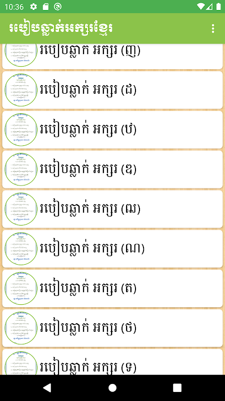 高棉刻字母是一個應用程序,指導您如何編寫高棉字母樣式。