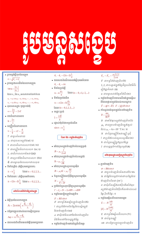 關於រូបមន្តសង្ខេប រូបវិទ្យាថ្នាក់ទី១២