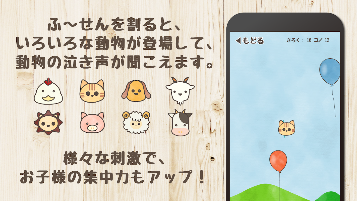 嬰幼兒的應用程式「Fu-Sen and Asobo」是一款遊戲應用程序,您可以透過彈出漂浮在天空中的氣球來玩。