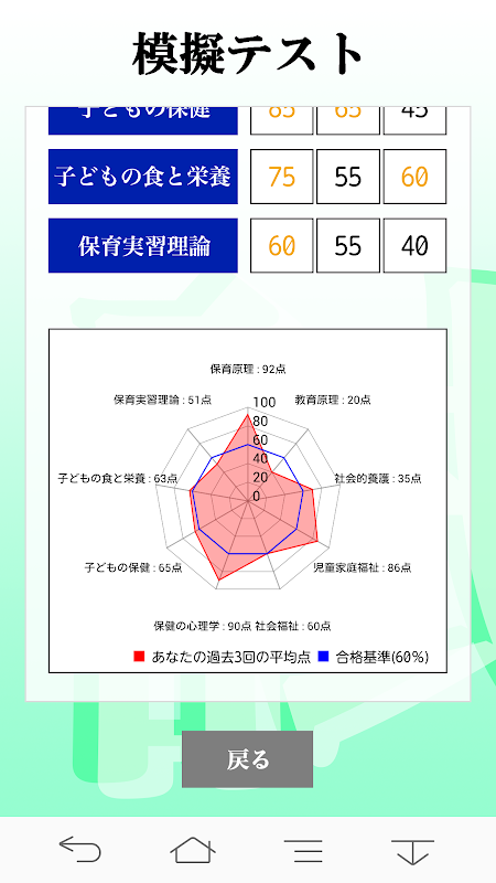 在實際測試中,通過選擇語言,音樂的二級學科,和建模(油畫)做測試。軋製線是60%或更多每個要選擇的兩個對象的50分制。