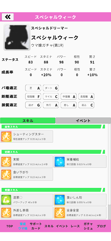包括訓練馬女孩、支持卡、相關事件、技能、賽道和遊戲中出現的扭蛋數據。 (最新數據會不定期更新)