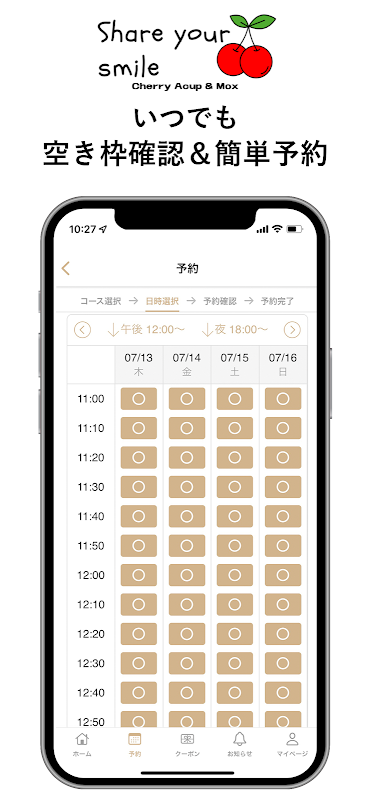 您可以隨時通過智能手機查看並預訂您想要的時段。