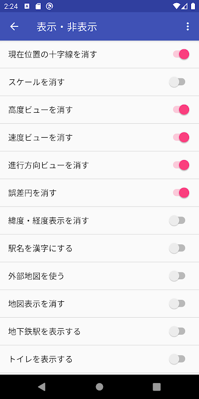 下部ボタンの[ON][OFF]を押して切り替えることによって、位置情報の有効・無効を操作できます。Android 自体の現在位置の取得を操作している訳ではないので、注意してください。