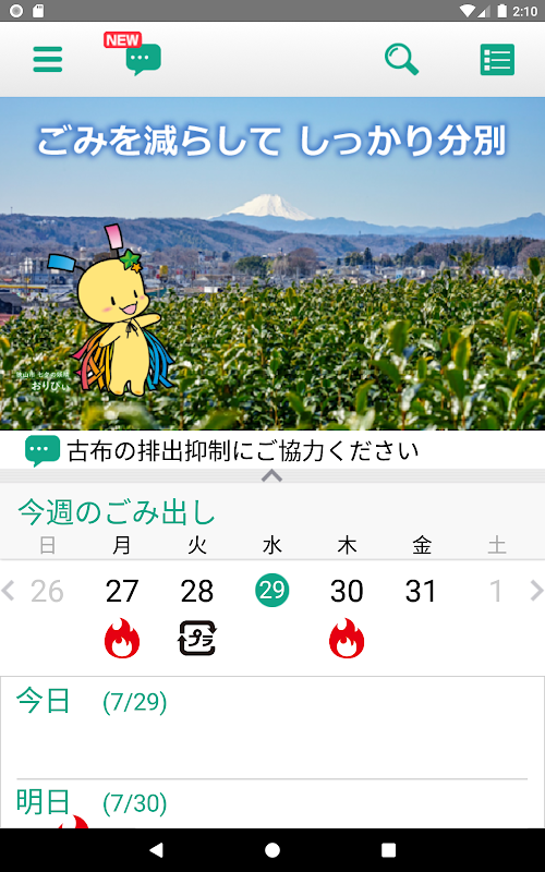 您可以在一個屏幕上按3種模式立即檢查今天,明天,每周和每月的垃圾收集時間表。