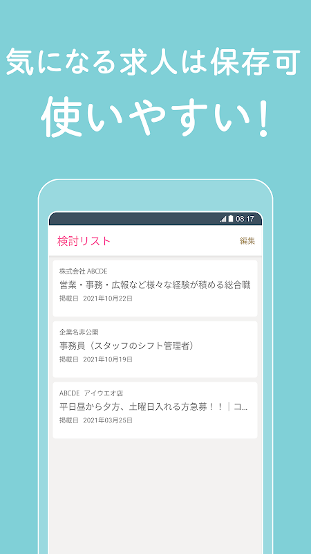 即使你沒有時間,該應用程序也可以讓你在空閒時間經常搜索和保存工作信息,並在你有時間的時候仔細查看。