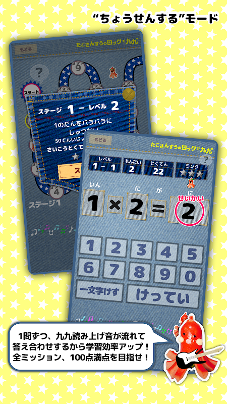 《Tako Math's Rock 乘法表》有兩種模式,讓您一步一步學習!
