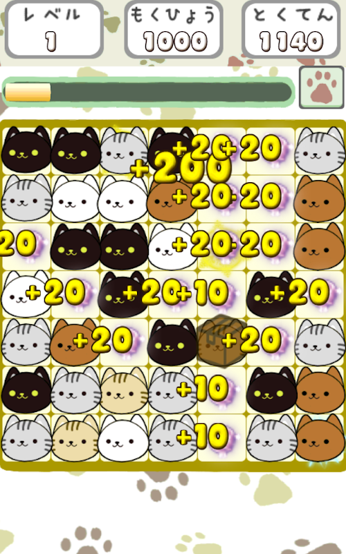 1.3つ以上の同じねこをなぞって消して、得点をゲットニャ!。