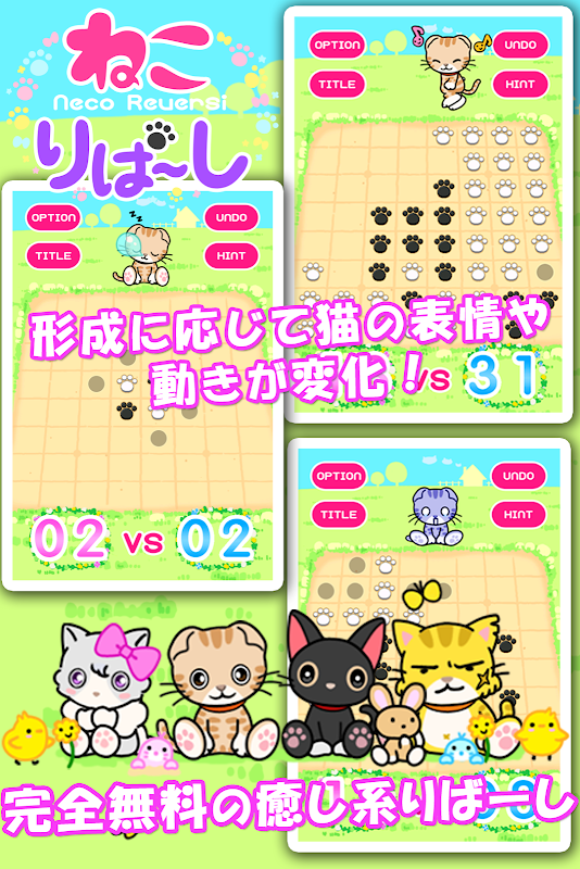 ちょー癒し系のネコ達と肉球のコマでリバーシ遊び!