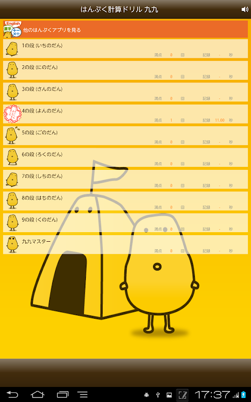四則演算は、①たし算、②引き算、③九九、④わり算、の4アプリがあります。