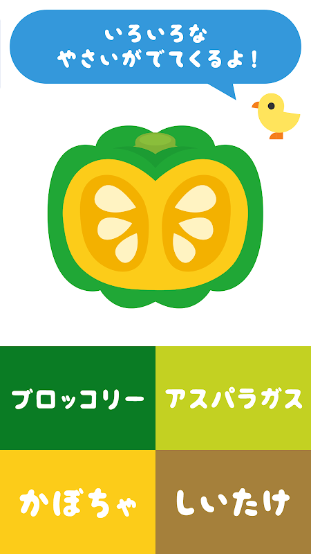 野菜の名前と、色を遊びながら覚えることが出来ます。