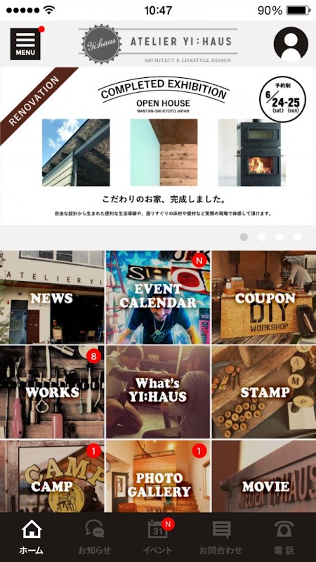このアプリは、お客様にアトリエイハウズが提供する家づくりに、より接してもらいやすくなるように開発しました。弊社が施工する新築住宅・リフォーム工事の紹介、施工写真などが閲覧いただけます。また、クーポン券やスタンプカードなど楽しい特典も満載!また弊社が運営しているトータルライフスタイルショップ「CAMP-lifestiyleFACTORY-」の情報も配信しています。イベントカレンダーからは、見学会や相談会などのイベントの日程をご確認いただけます。疑問質問があればお問い合わせからお気軽にご相談ください。