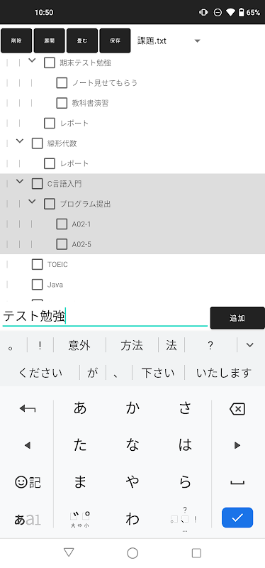 - 選擇一個任務並按添加按鈕在其下添加一個子任務。
