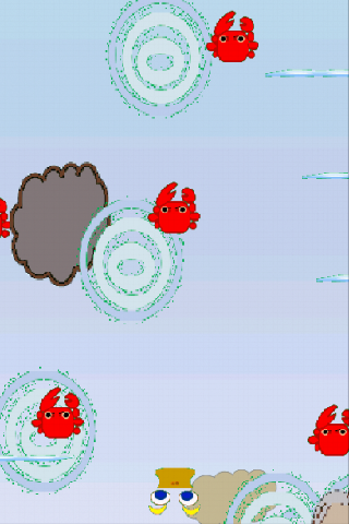 *とちゅうで、雨がふったり、にせものカニが、じゃましに来ます。