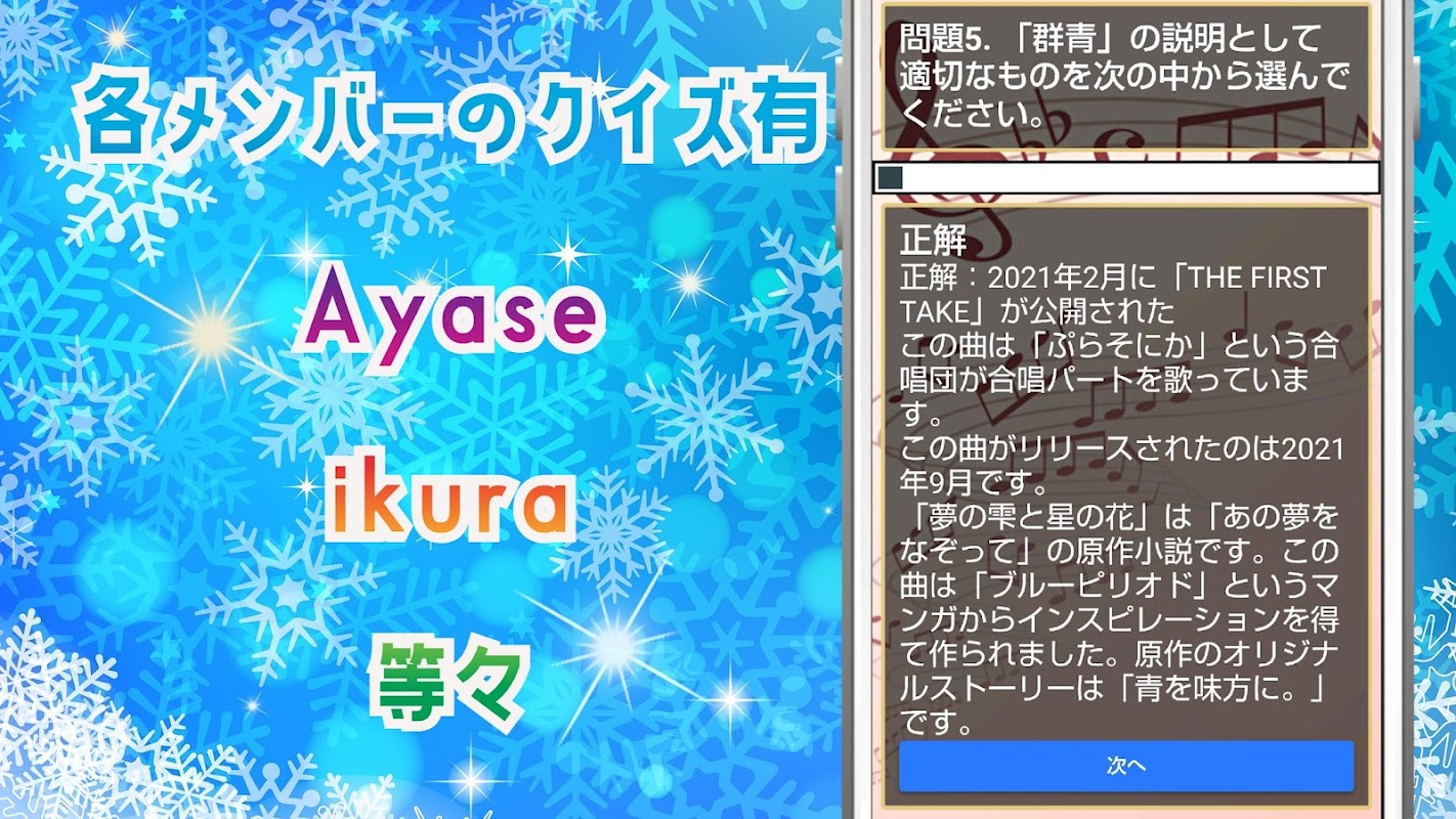 大人気グループ 「yoasobi」に関するクイズアプリです。