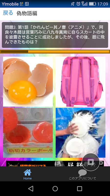 問題形式は、択一、自由、複数、画像などで、主にアニメの物語シリーズからの出題と