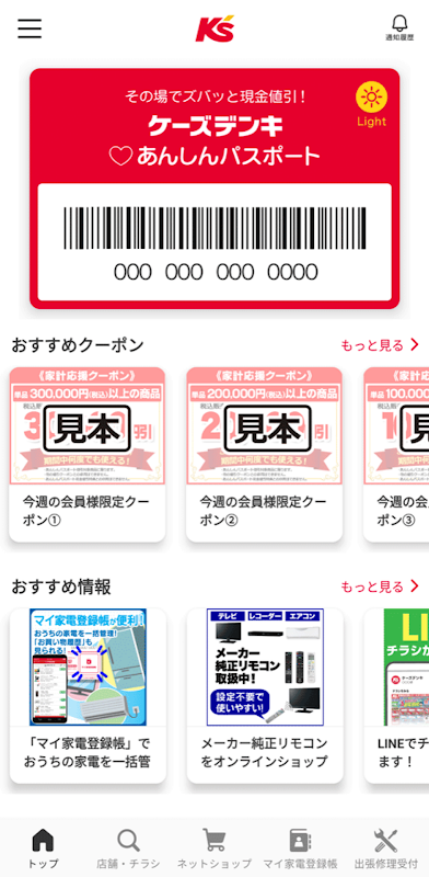 1. 您可以在本應用程式中註冊「K's Denki Anshin Passport」。 (也歡迎新會員)